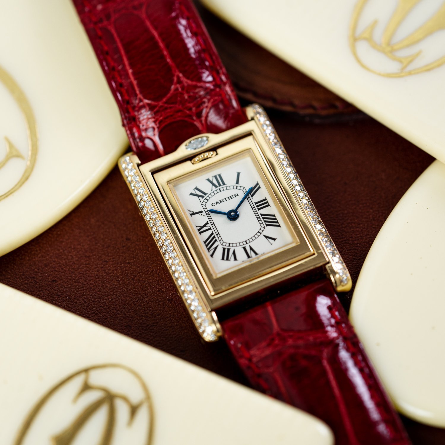 The elegant opaline dial sports applied Arabic indices and feuille (leaf) hands as a nod to the ref. 1518 and early 2499s perpetual calendar chronographs. Two apertures at the 12 o’clock position reveal the day and month mechanism. The dial features three sub-dials. The recessed sub-dial at the 9 o’clock position displays a running seconds as well as a 24-hour hand while the recessed sub-dial at the 3-hour position incorporates a 30-minute chronograph counter and a leap year indicator. Finally on the lower sub-dial we find a charming moon phase indicator, which is surrounded by a date complication.