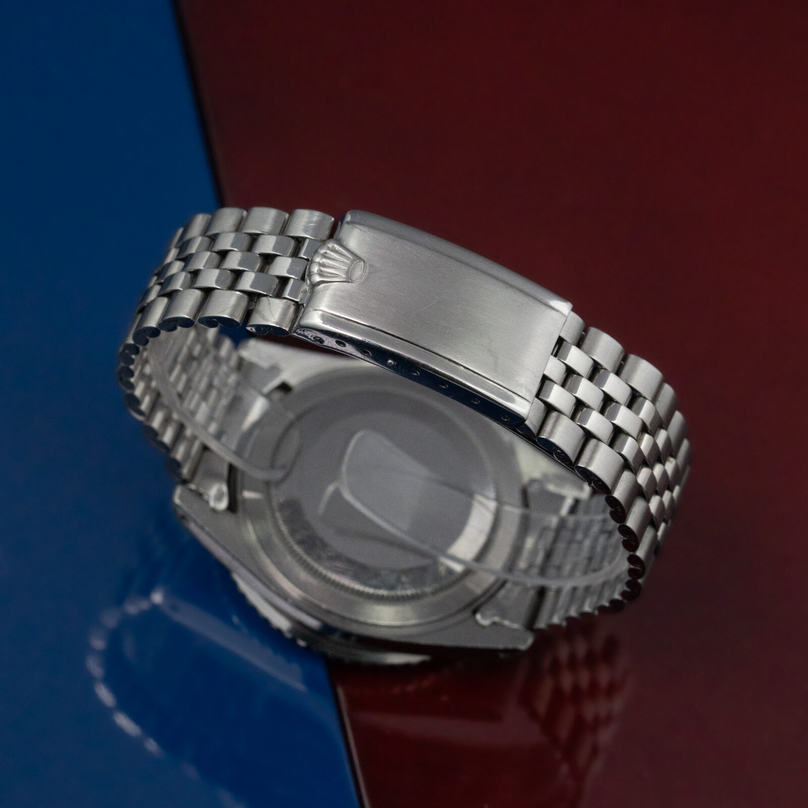 This 1675 has a beautiful "red-back" bezel inlay, which has elegantly faded over time due to the factors of nature. This GMT-Master dates back to 1966 and. With its 1.3M serial it comes with the coveted original 'Gilt Dial', which retains a perfect mirror gloss. This specific one is referred to as Type C. The lumeplots, together with the original hand-set -with small GMT-arrow- have created a stunning yellowish hue matching perfectly. The 40mm case that houses the calibre 1575 is carried by a stainless steel and folded Jubilee bracelet with '55' end links. It dates back to 4th quarter of 1965, so matching the period of the case.