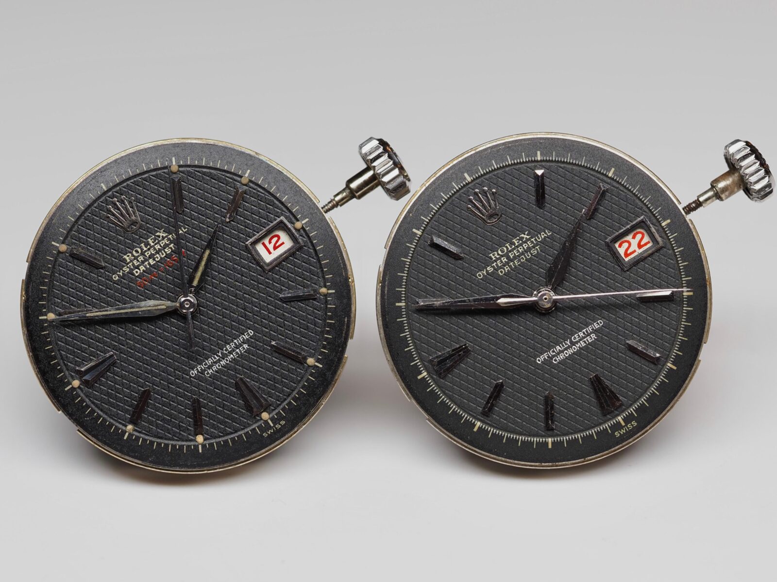 Installed is the most coveted type of dial, which isn’t one with a smooth surface but with a waffle motif instead; also known as “Honeycomb”. These are considered the pinnacle of steel Rolex Datejusts. Apart from the two color options, either white or this more sought-after black dial, there is also a variety in the cliché used. Besides the spacing and graphics of the font, the clearest difference can be found in the smooth outer track that has a soft “pie-pan” edge. (less angular compared to the 16xx series) One being divided into 5 segments per minute, this one into 10 segments per 5 minutes.