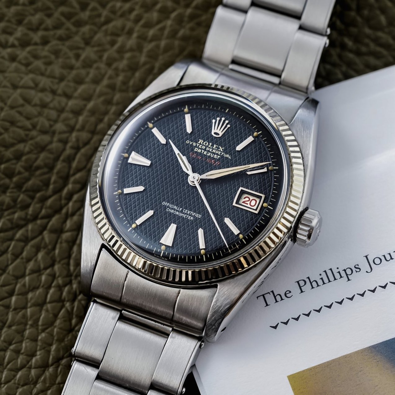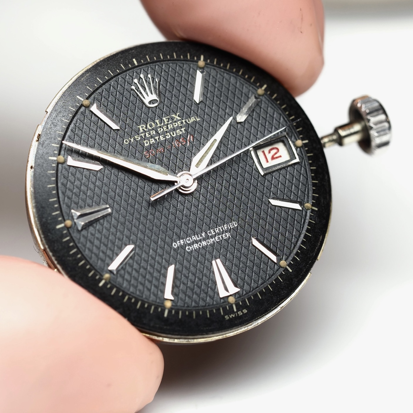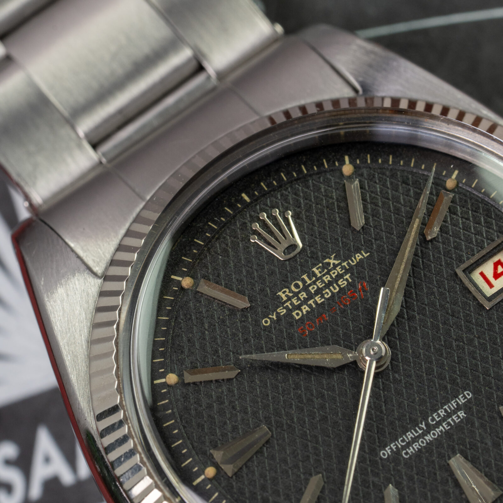 The "Honeycomb dial" with a red-depth rating printed on it, makes this early Datejust an esteemed execution of an otherwise ordinary model-line.