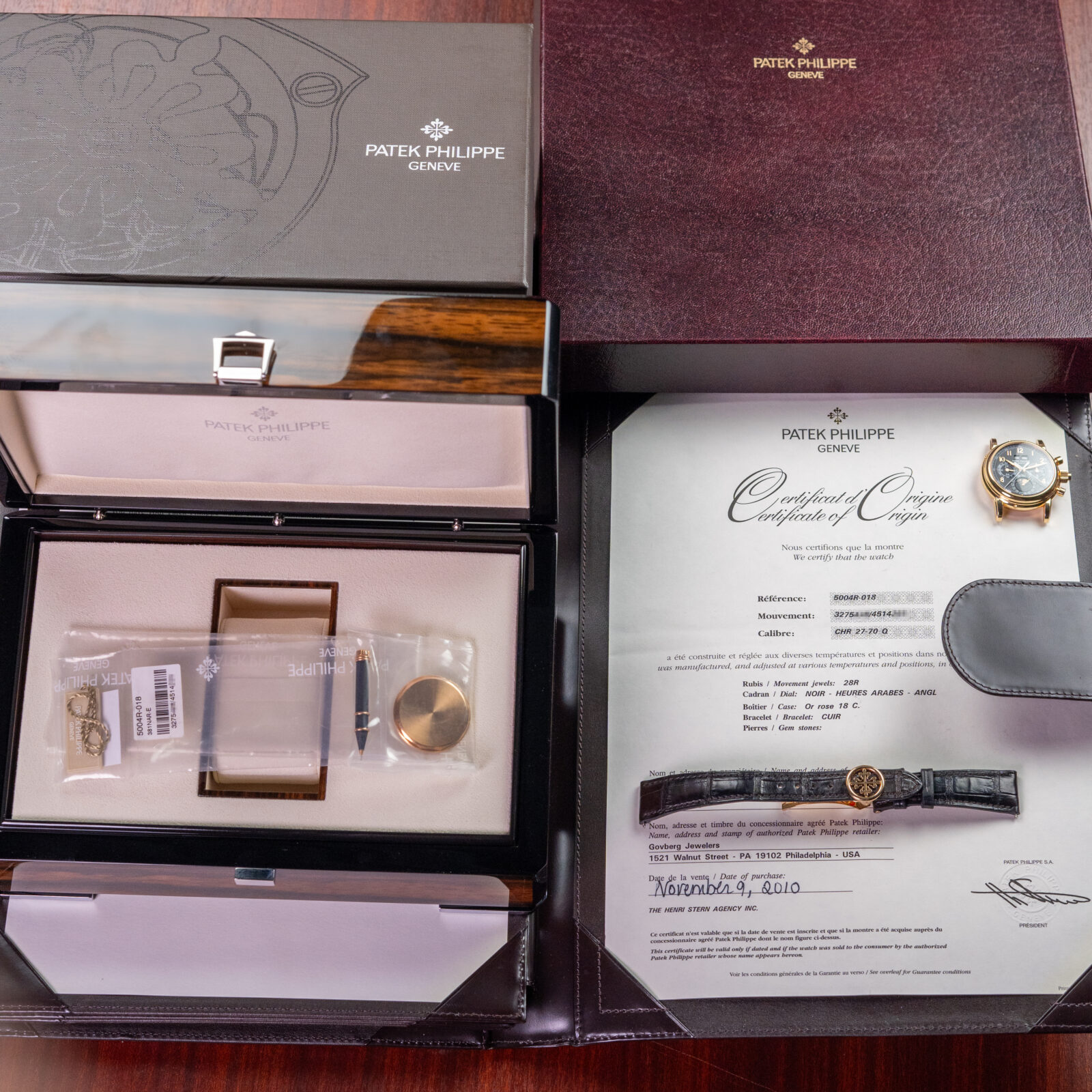 It is estimated that between 200 and 300 specimens of the ref. 5004 were produced in total between 1996 and 2012. Pink gold variants are rather rare, but ones with a black dial are especially hard to find. Only a handful are known to exist and when they do pop up, usually at auctions, they fetch very respectable prices. This one is fresh to the market and was originally retailed in the USA.