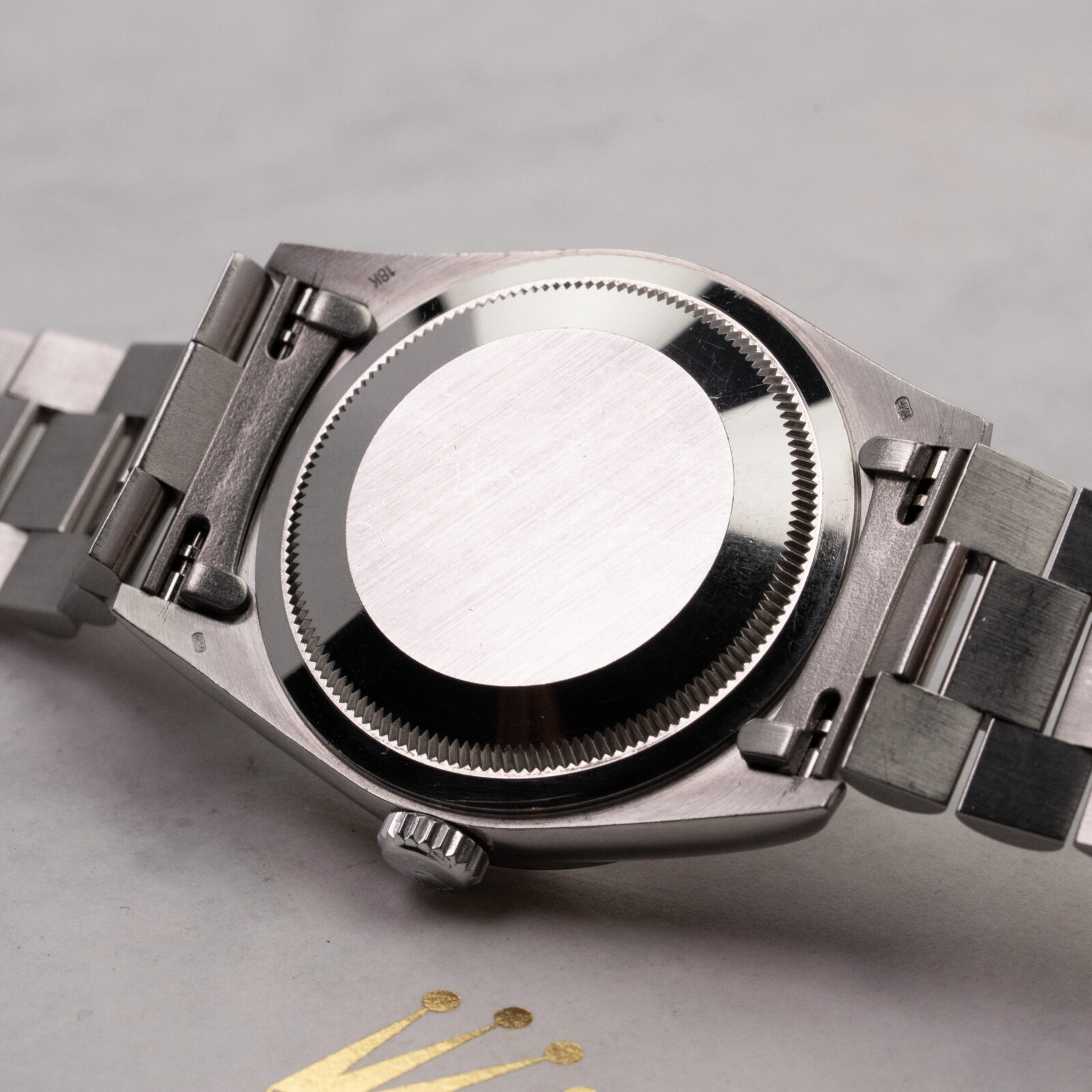A white gold Day-Date is an under-the-radar take on the flashy man’s watch. At first glance it may pass as stainless steel but you’ll definitely feel the heft and luxurious feel of a gold Rolex on the wrist.