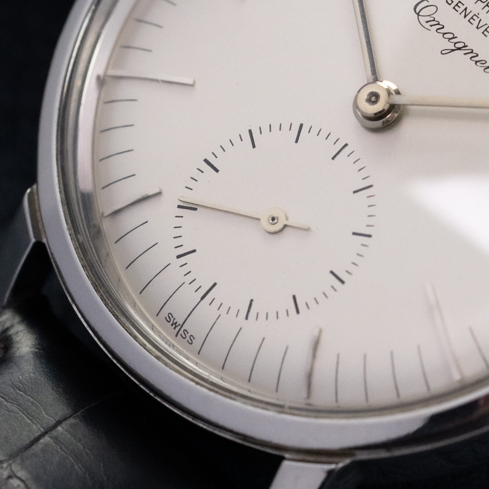 Encased in 35mm of solid stainless steel — a rarity in Patek’s dress watch lineup — the 3417 houses the robust manual-wind caliber 27-AM 400 (earlier series are equipped with cal. 12”400), cloaked within a soft iron inner case to shield against magnetic fields. Its clean, almost architectural dial with applied markers and dauphine hands reflects quiet mid-century refinement, while the screw-down caseback hints at its utilitarian soul.