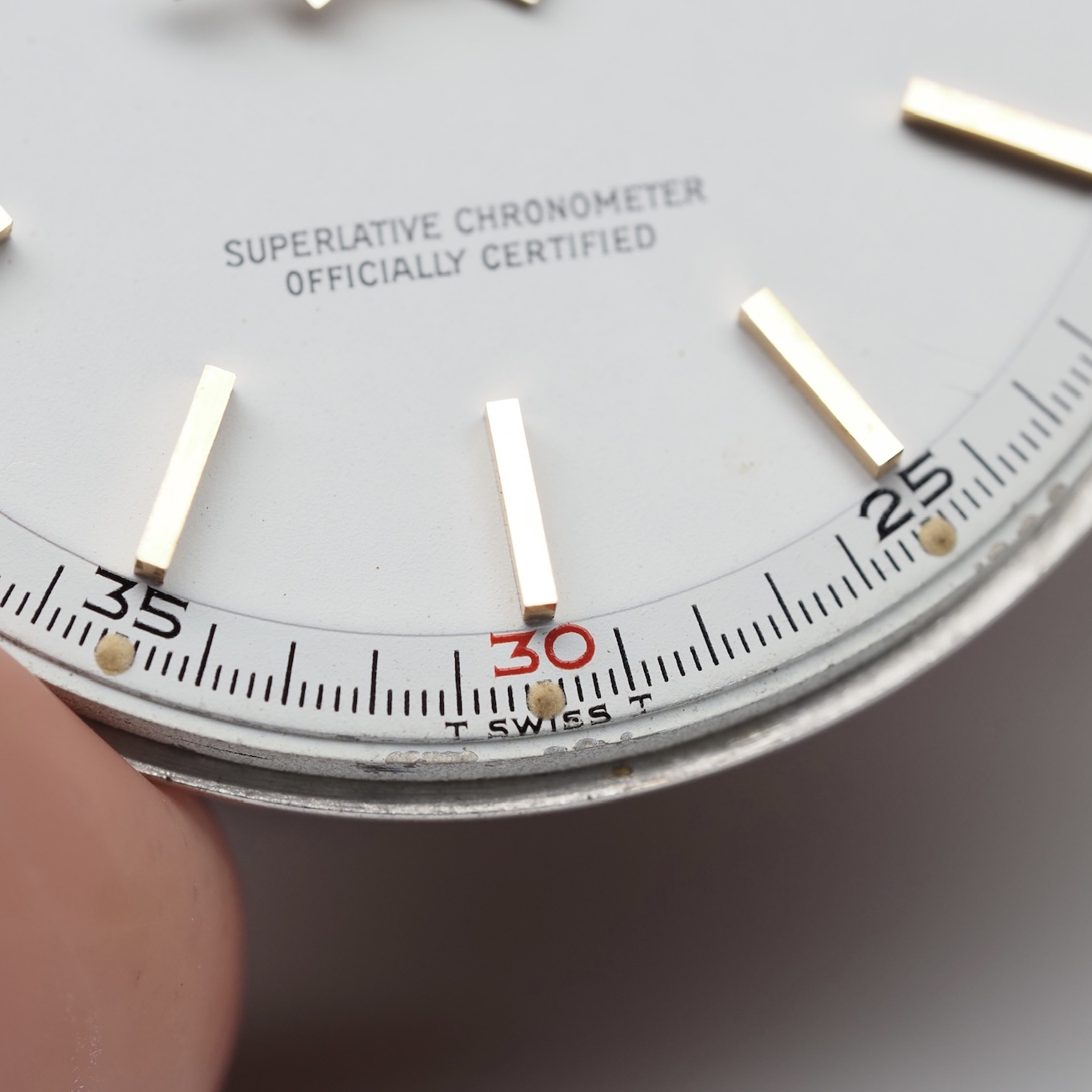 Arabic minute track, Red quarters, 18k rose-gold applied baton index, original Rolex