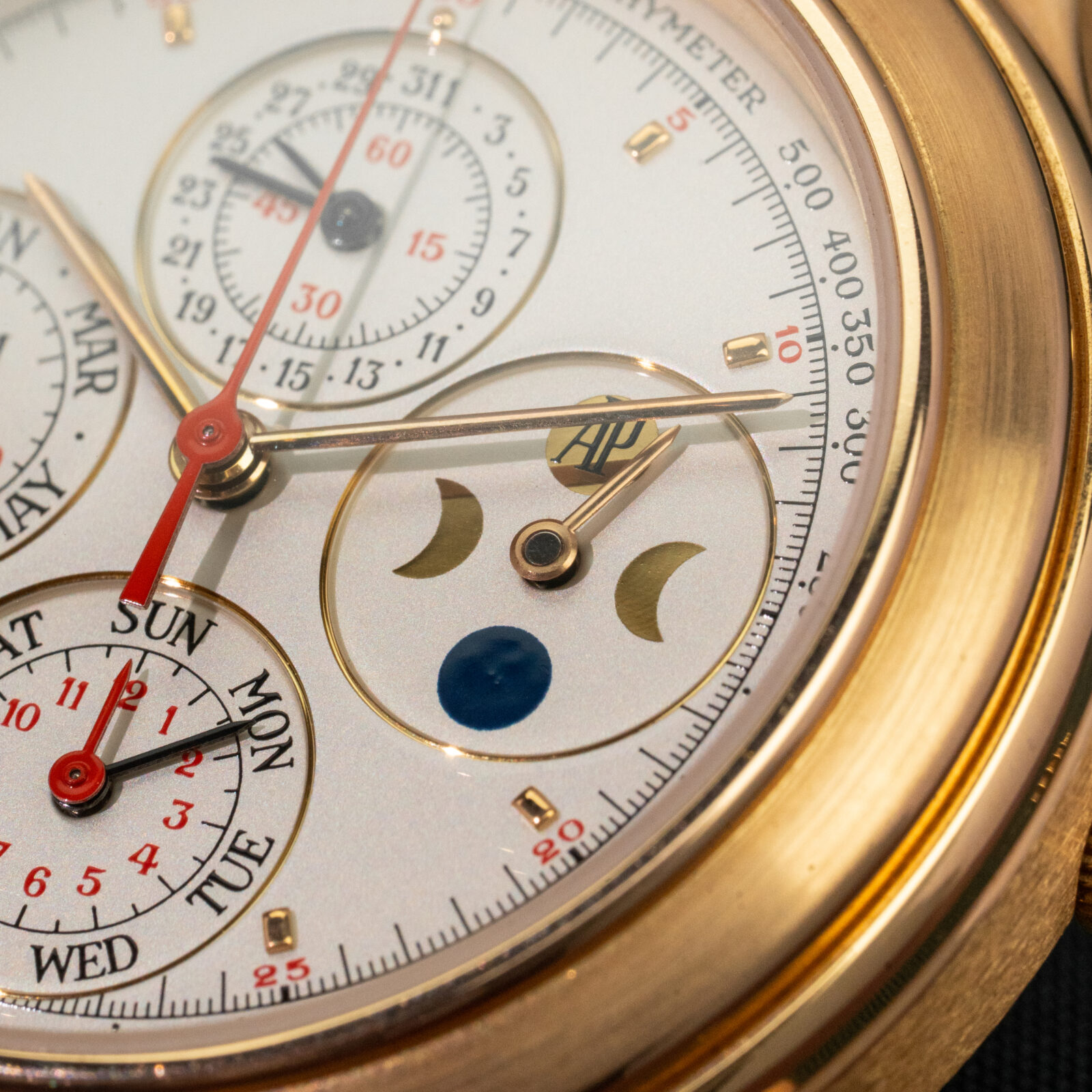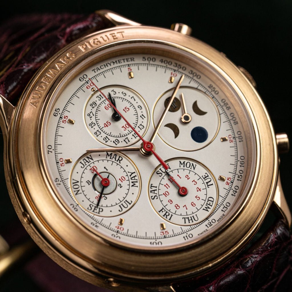 Audemars Piguet’s Huitième line heralded the arrival of the modern watchmaking era by combining the classic perpetual calendar chronograph aesthetic with an oversized case and an automatic movement.