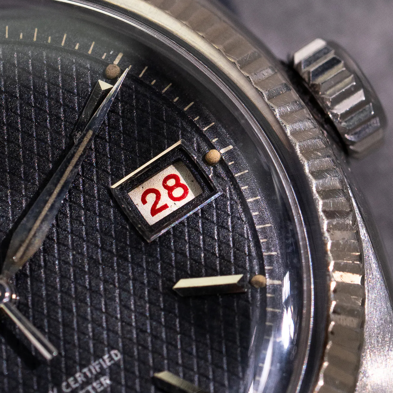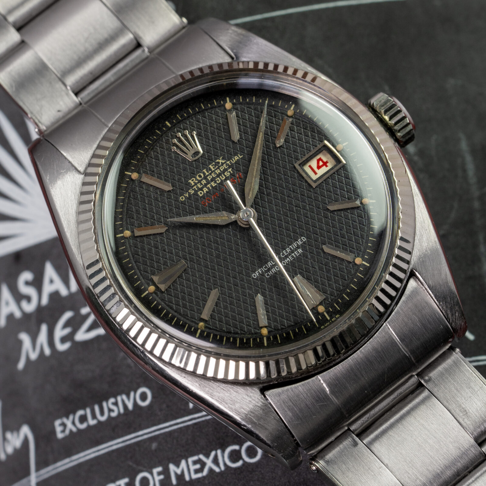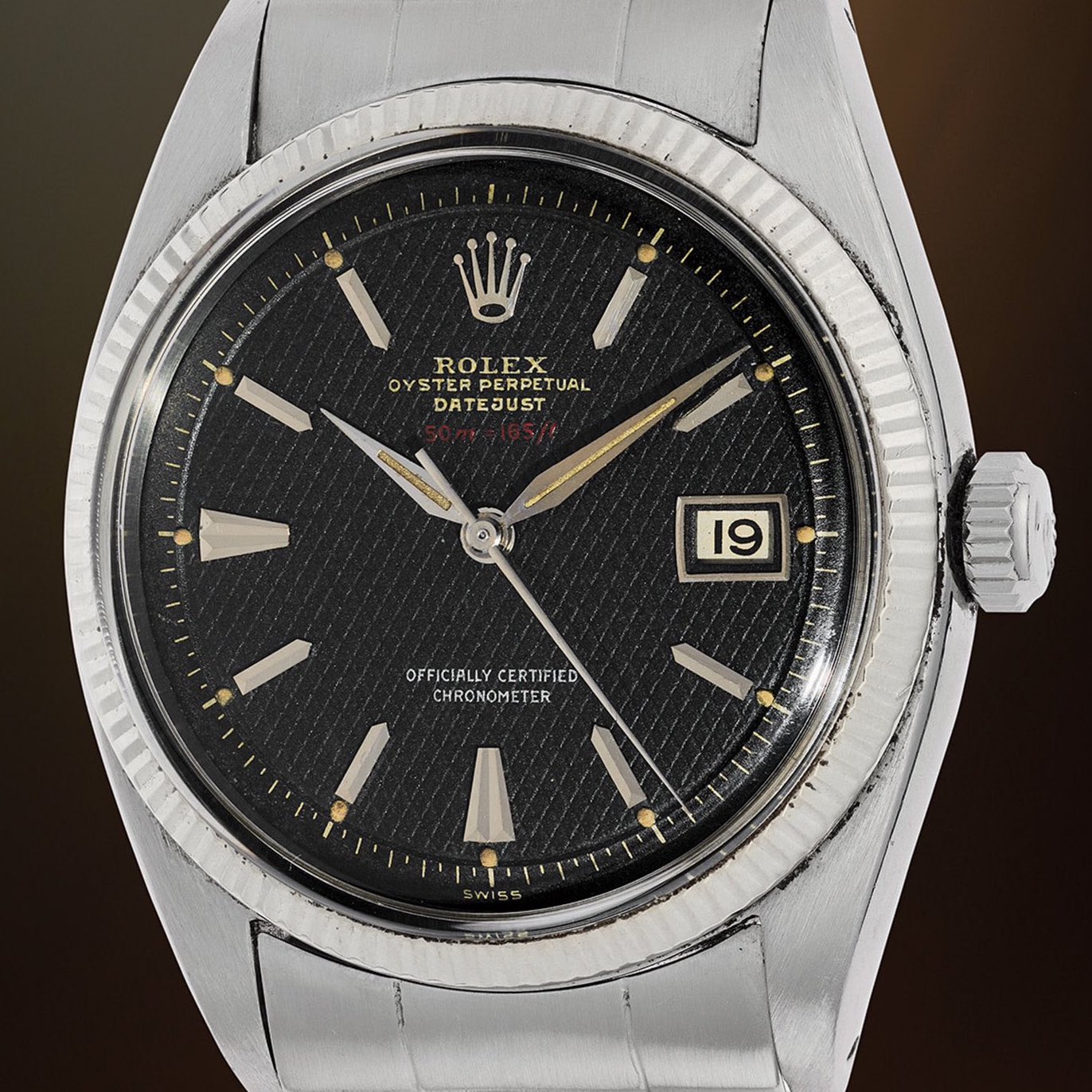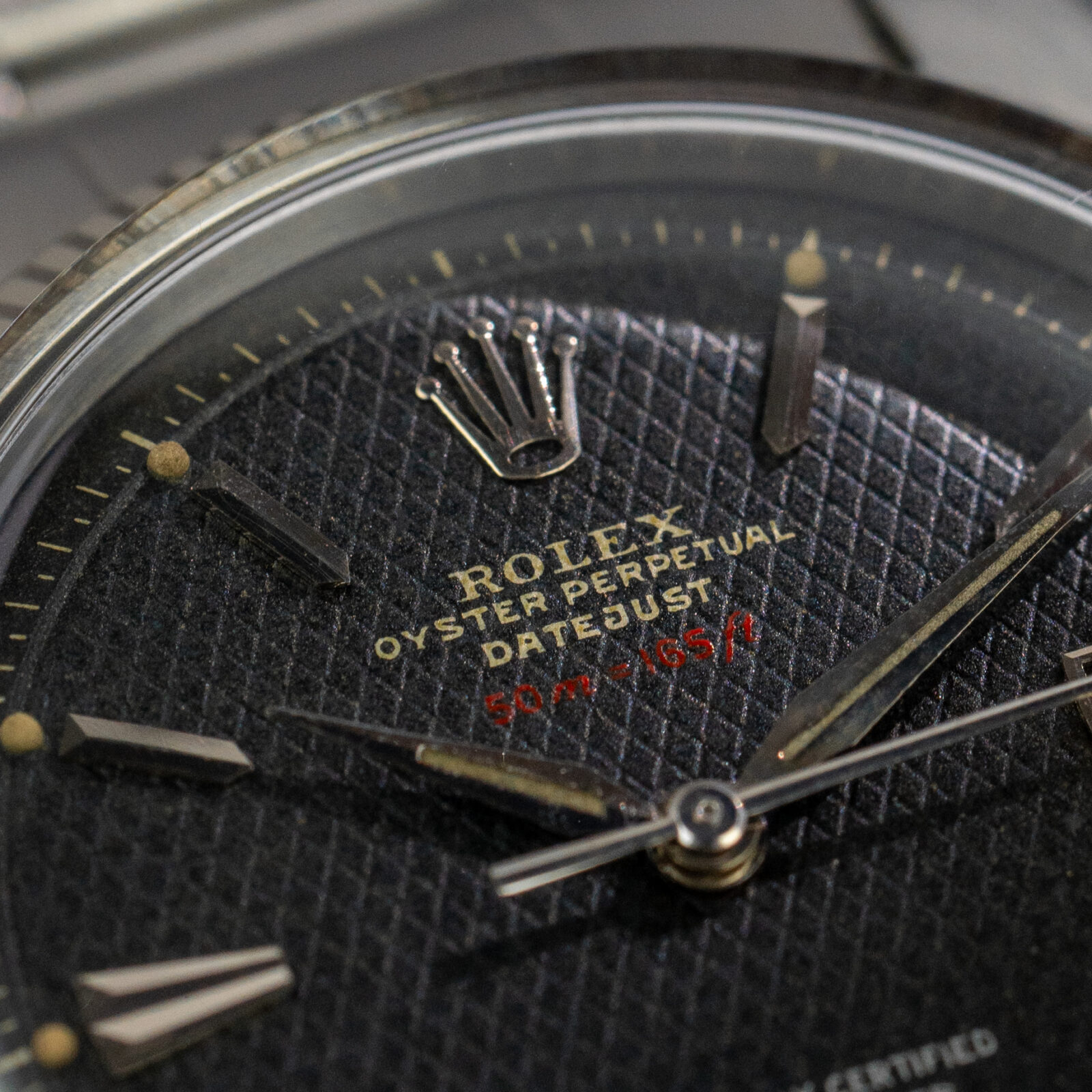 The "Honeycomb dial" with a red-depth rating printed on it, makes this early Datejust an esteemed execution of an otherwise ordinary model-line.