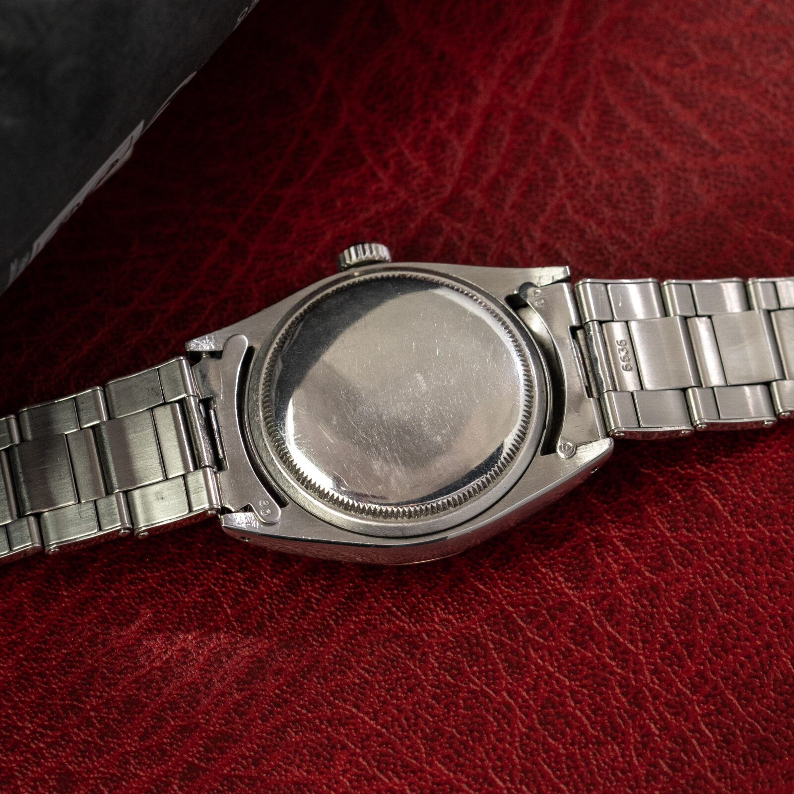 The first were ushered in under two references, depending on the bezel finish, it was either a 6304 or 6305. The first mentioned is more uncommon to encounter and had a smooth-finished, slightly domed bezel. The 6305 can be divided in two series. Initially a white-gold milled bezel was applied to the case. These are more finely fluted than the later bezels from the 16xx series onwards, and therefore are known as “coin-edge”. The case itself measures a perfect 36mm and is preserved in immaculate state. Due to the domed caseback, these so-called “Ovettone” sit a bit higher on the wrist. The lug-width is 20mm and in one find the riveted Oyster with expandable links.