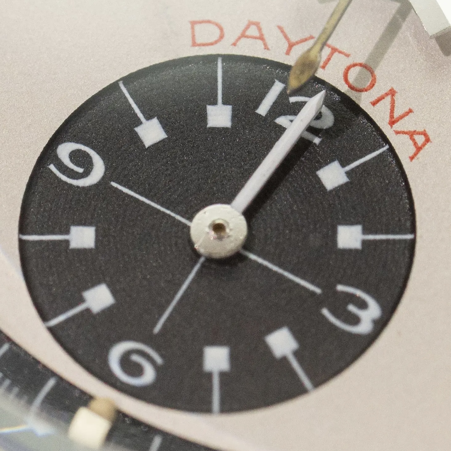 The Reference 6262 is the second iteration of the Daytona with the "Exotic Dial" option and was only produced for one year (1970 until 1971). And as much as it looks identical, from the outside, as its predecessor there are quite a few changes on the inside. The upgraded Valjoux 727 movement for example. The base 722 found in the 6239 beats at 18,000 vibrations per hour, whilst the new 727 runs at 21,600 beats per hour.