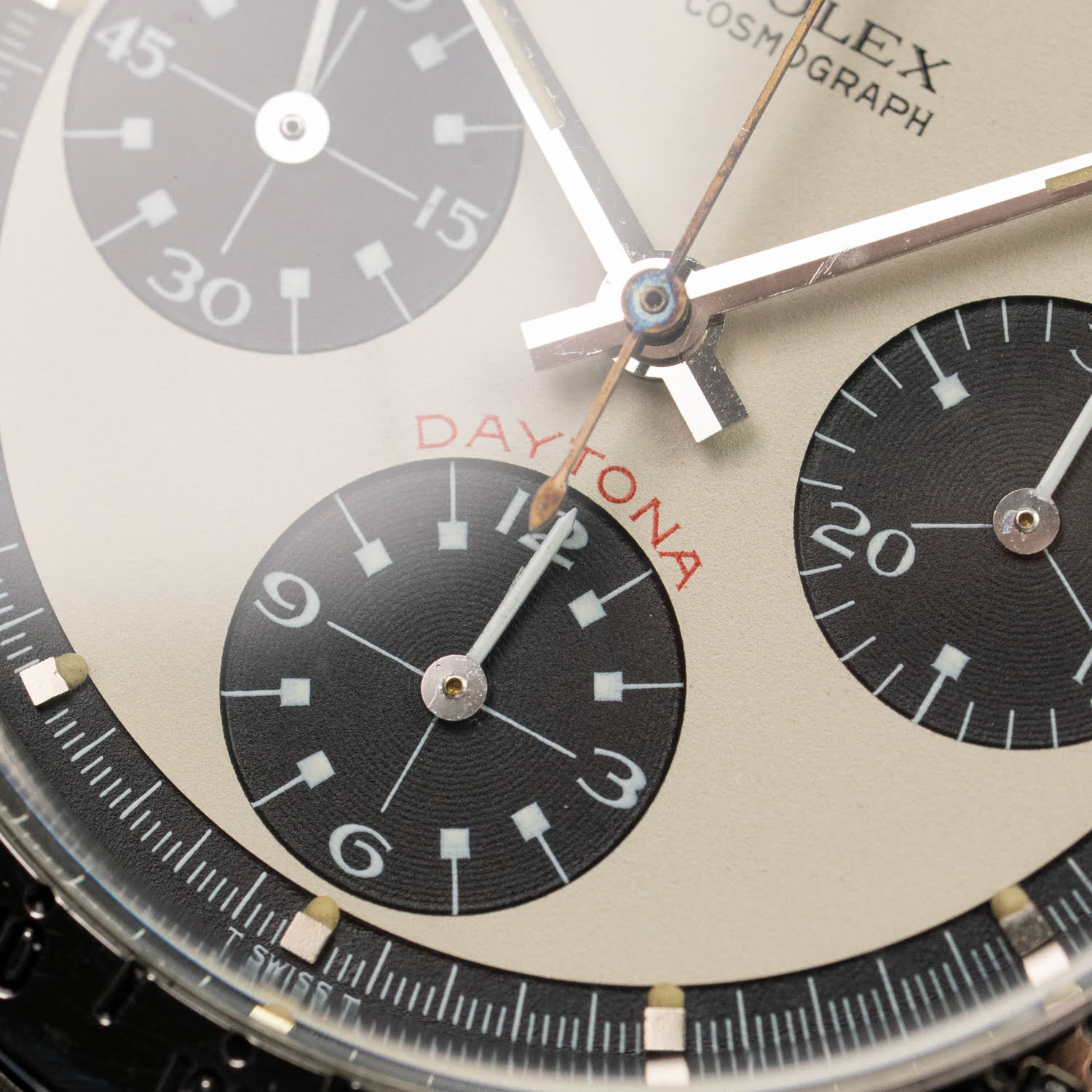 One of the most distinguishing features of this Rolex Daytona is its iconic "Paul Newman" dial. Introduced in 1963; but they were not exactly flying off the shelves. Two years later Rolex introduced an extra dial option with some art-deco design features and an overall different look, dubbed by Rolex 'Exotic dial'; but obviously better known for its unofficial nickname.