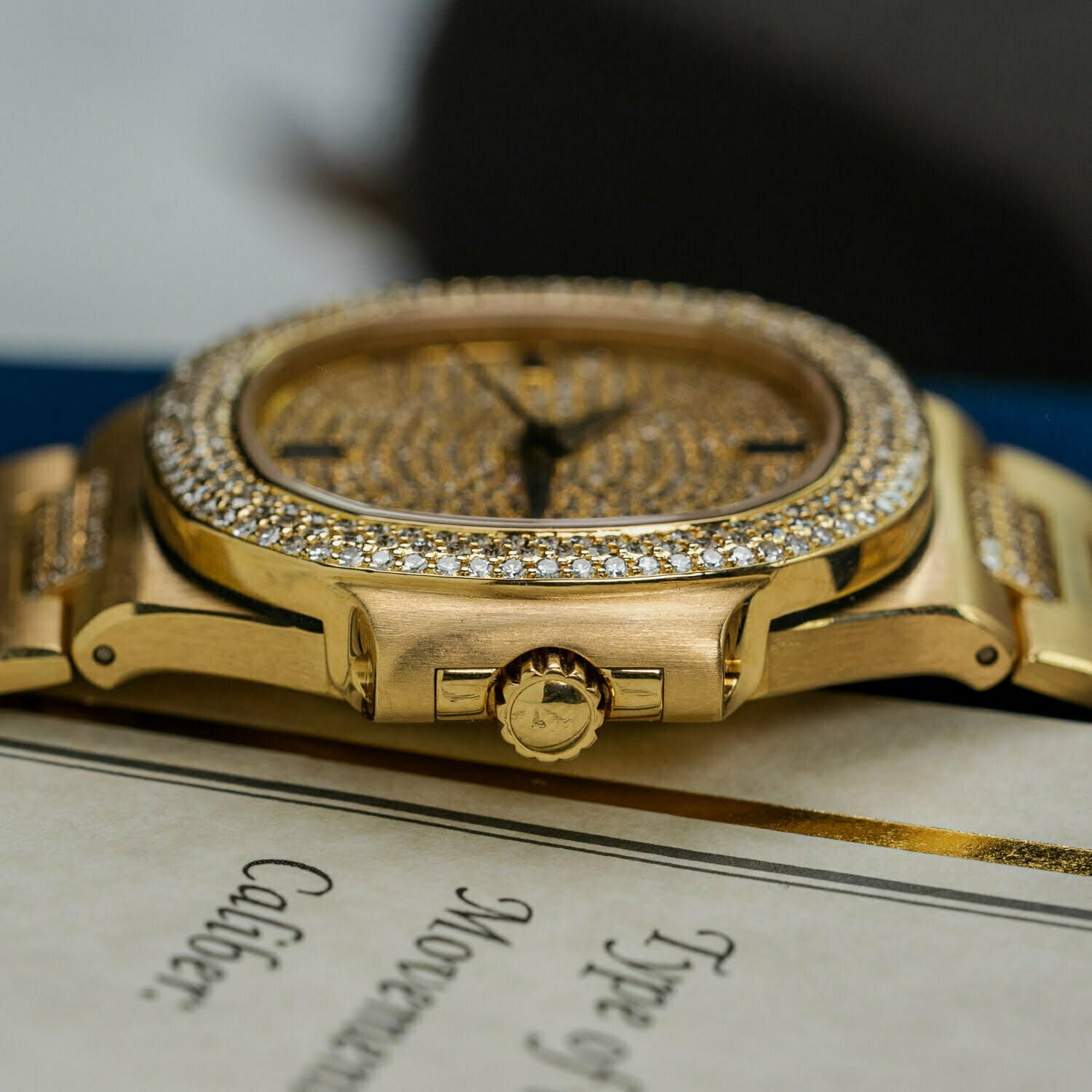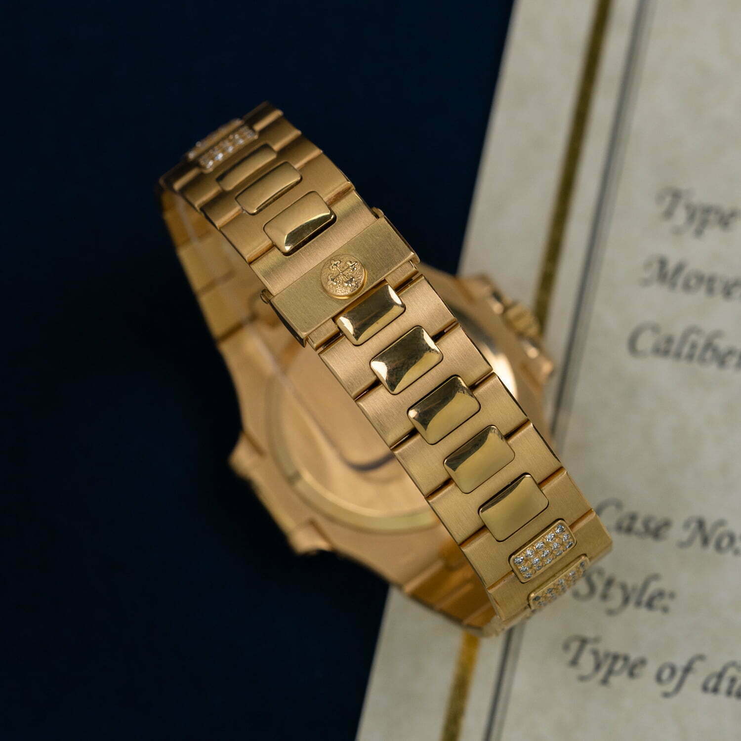 18k yellow-gold integrated bracelet with factory-set diamonds, original Patek Philippe
